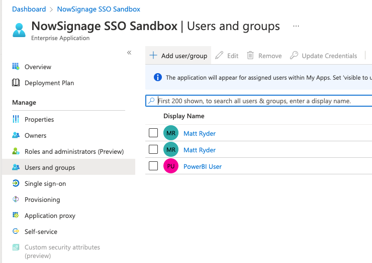 Por favor, tenga en cuenta: Para asegurar la creación exitosa de nuevos usuarios, es esencial primero agregarlos al grupo de usuarios SSO de NowSignage dentro de Azure.